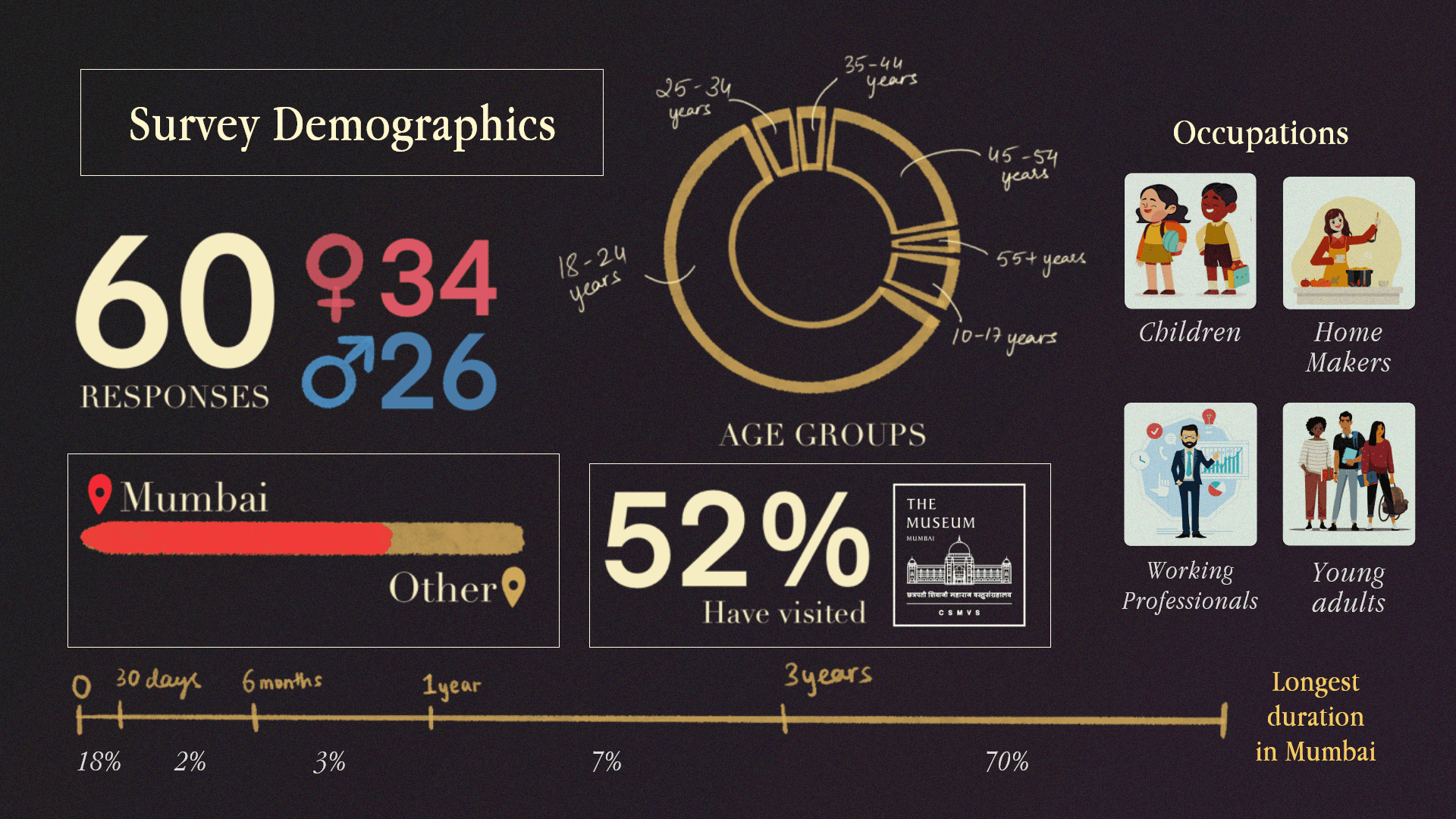 Despite housing incredible cultural artifacts and being situated in Mumbai's tourist district, CSMVS Museum faces a troubling reality: 52% of survey respondents had never visited, and 70% were long-term Mumbai residents. Even tourists visiting the area skip it.