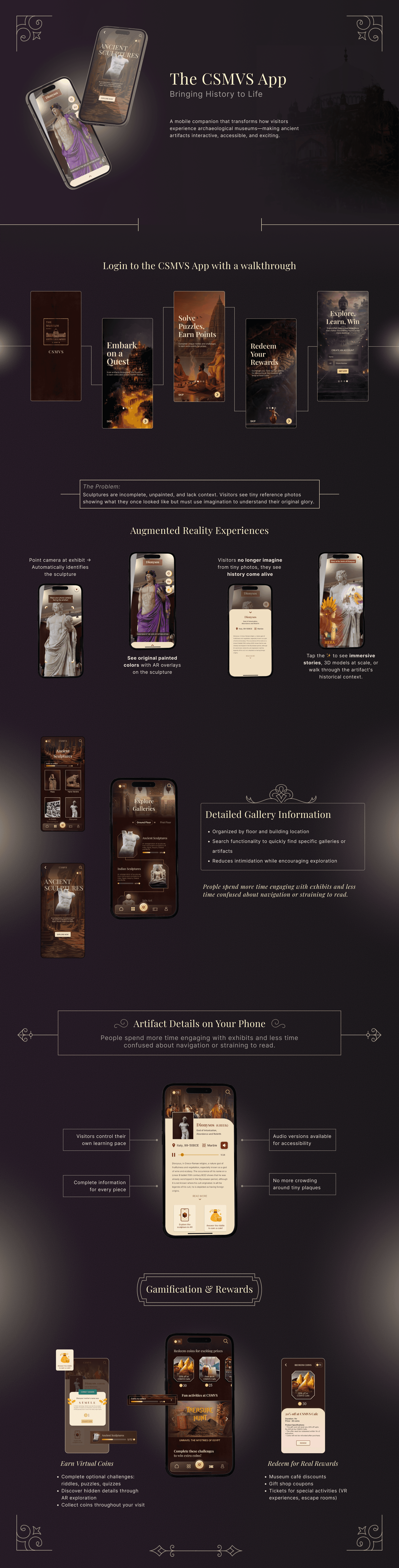 Indian archaeological museums preserve incredible cultural heritage—but locals rarely visit. Chhatrapati Shivaji Maharaj Vastu Sangrahalaya (CSMVS), despite being in Mumbai's tourist hub, struggles to attract even long-term residents who see it as a "one-time visit." I designed an AR-powered mobile app that transforms passive viewing into interactive exploration, making history come alive.